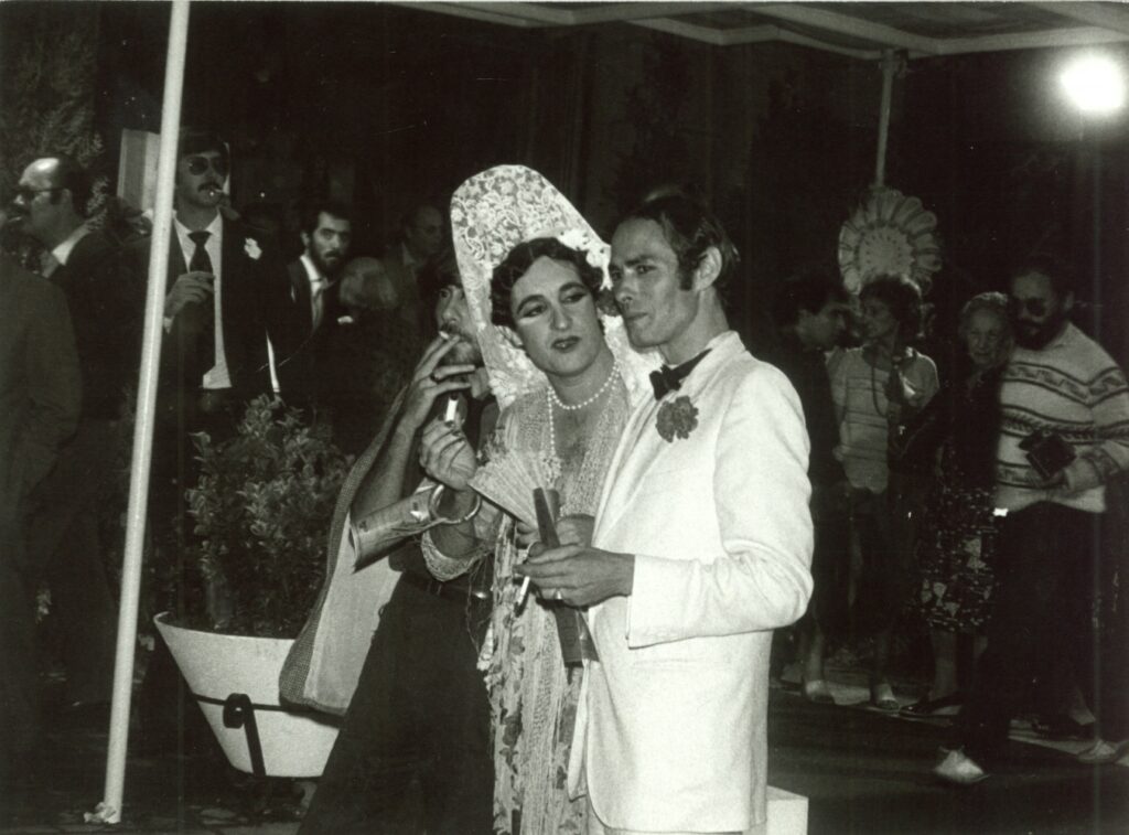 In this photograph, taken in 1979 and widely reproduced, we can see a classic image in the visual culture of film festivals: the entrance of personalities on the red carpet. In this case, the artist José Luis Pérez Ocaña entering the Victoria Eugenia, “the Festival Palace”, on the arm of actor Pierre Clémenti. Faithful to his own aesthetic-political practice, Ocaña appears as a transvestite, with his characteristic appropriation of the aesthetic of popular religious devotion.