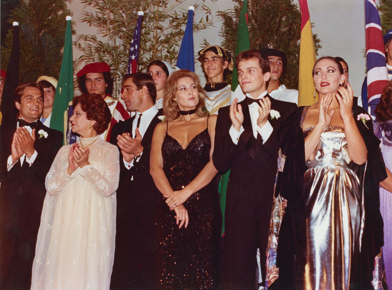 Alcance y contenido: Gala de Clausura celebrada en el Teatro Victoria Eugenia. En el escenario, de izquierda a derecha, el actor Saverio Vallone, la actriz Conchita Montes, el actor Fabio Testi, la actriz Olga Bisera, el cantante y actor Miguel Bosé y la actriz Norma Duval aplauden tras el discurso pronunciado por el alcalde de San Sebastián, Jesús María Alkaín