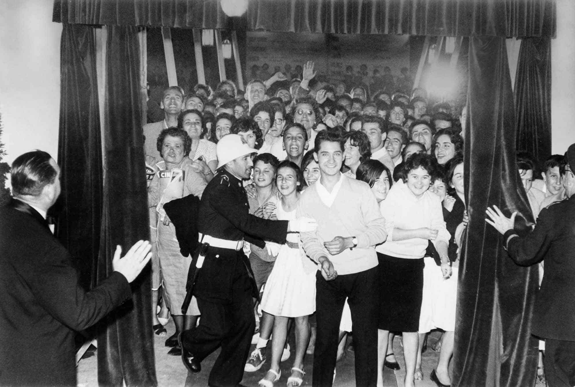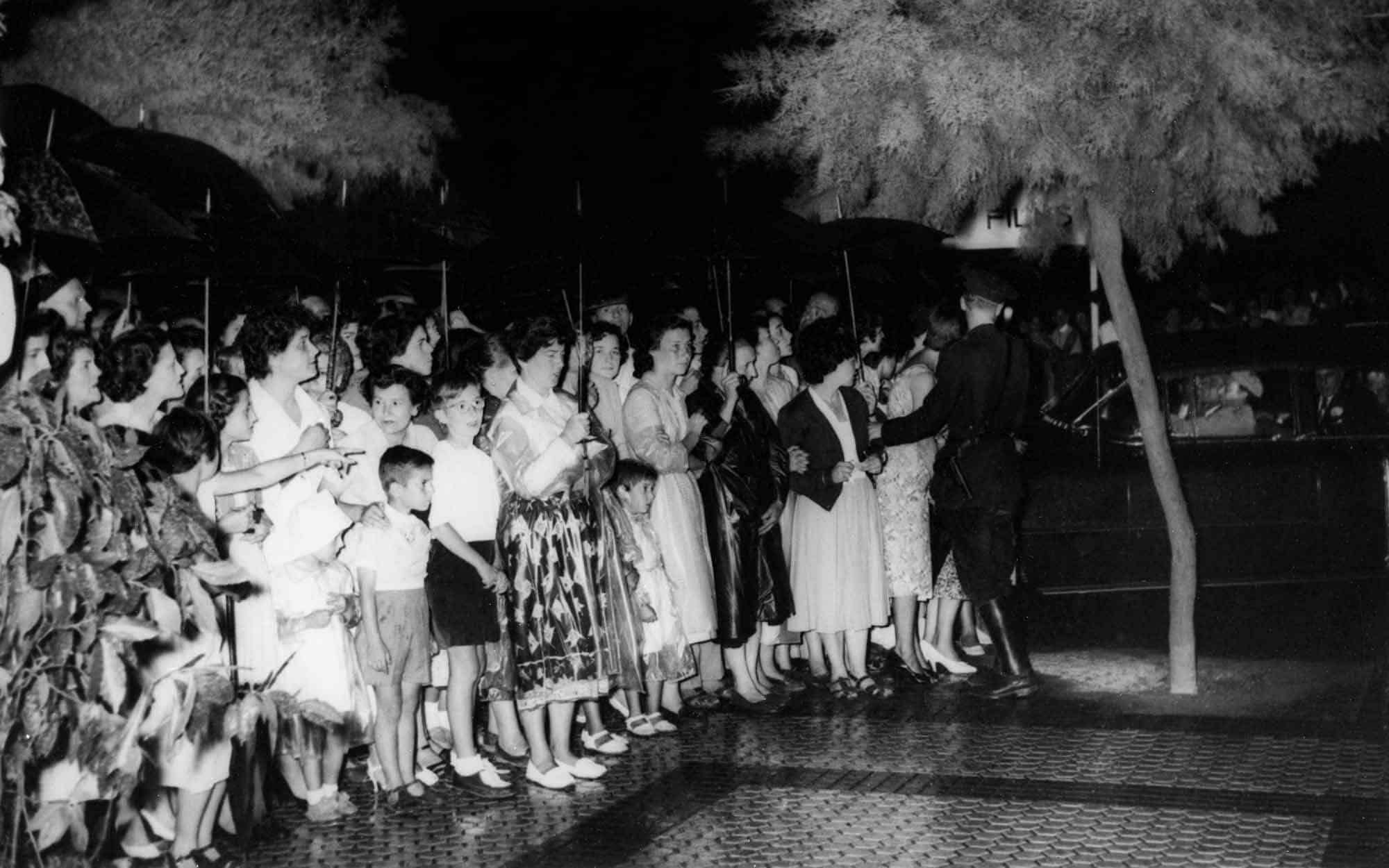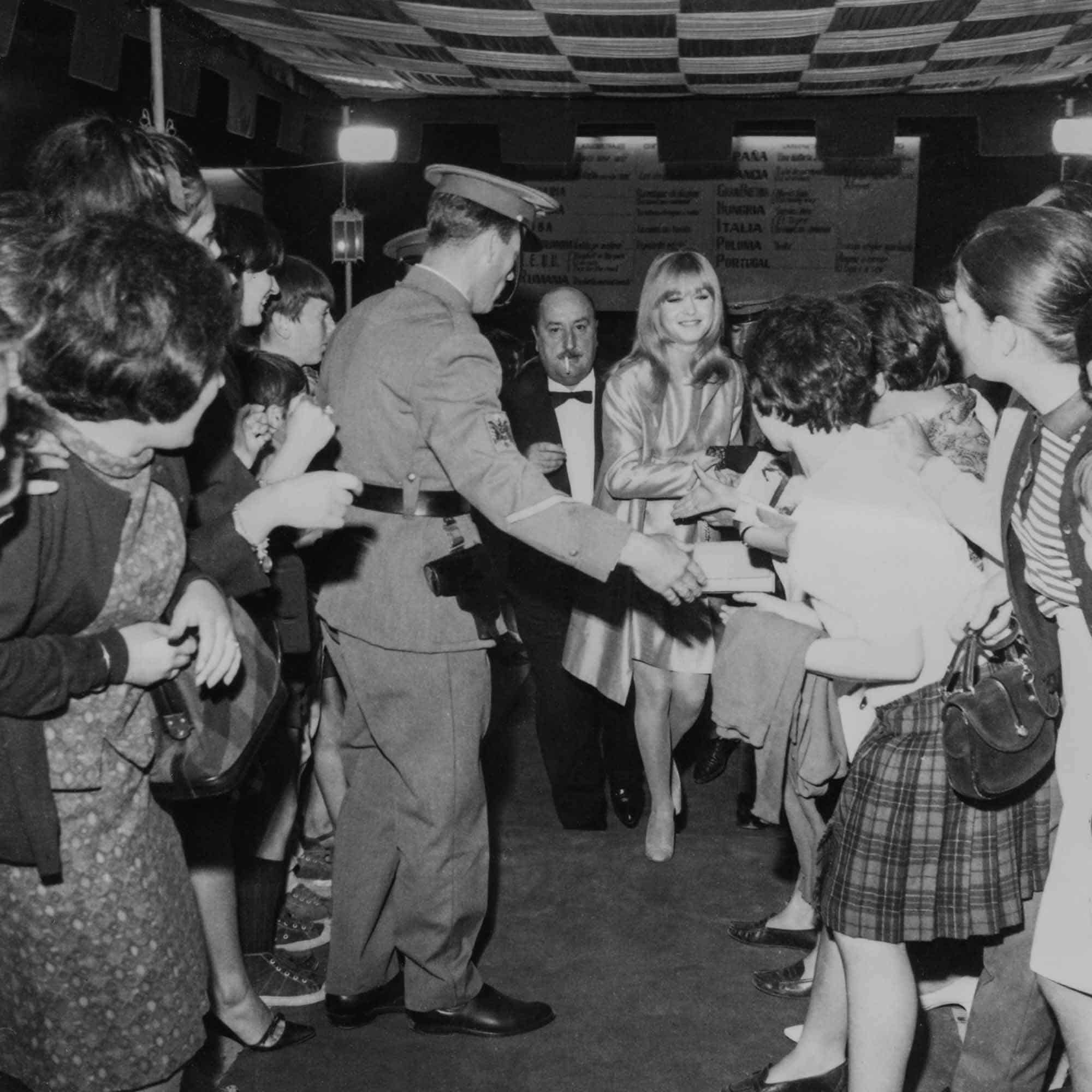 Por otro lado, la exposición pone el foco en el afuera de la alfombra roja, reflexionando sobre las fronteras sociales y simbólicas que se trazaban entre la expectación popular que suscitaba el Festival y la exclusividad y elitismo de la mayoría de sus actos oficiales. A través de esta reflexión sobre el adentro y el afuera del Festival, la exposición también interroga la presencia de los aparatos de la dictadura franquista en el certamen y su instrumentalización como escaparate internacional del régimen—pero también los resquicios de libertad que se abrieron en el marco del Festival.