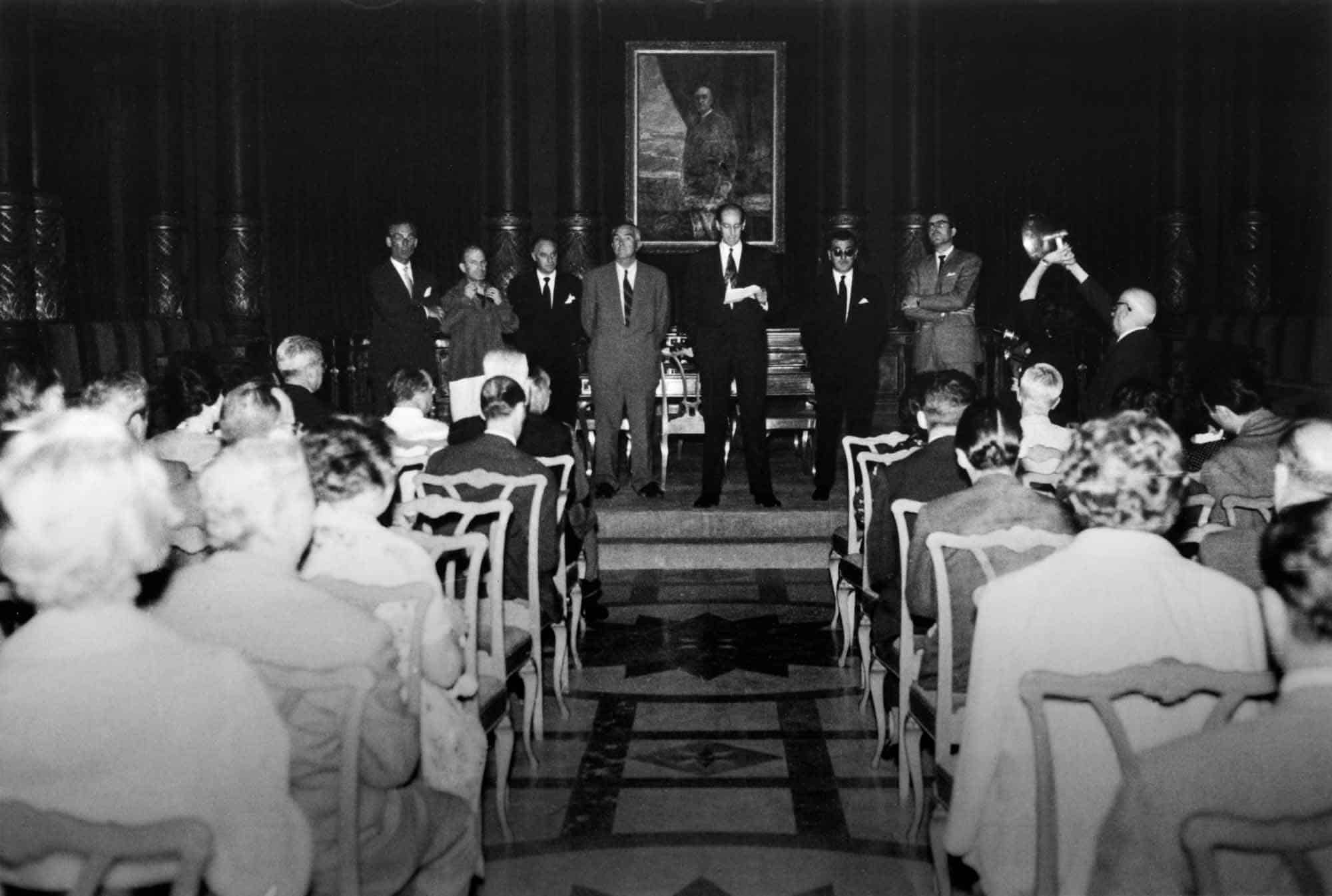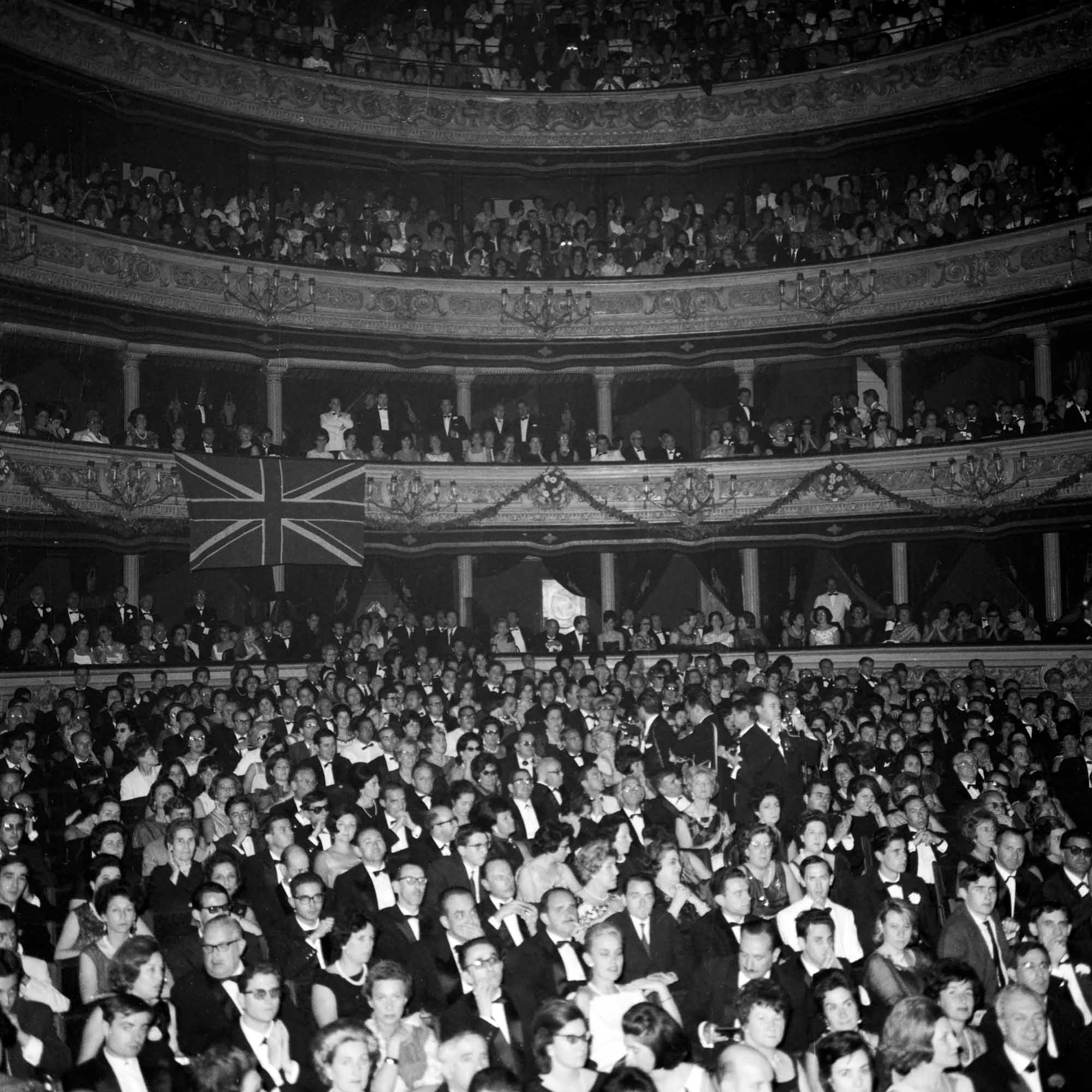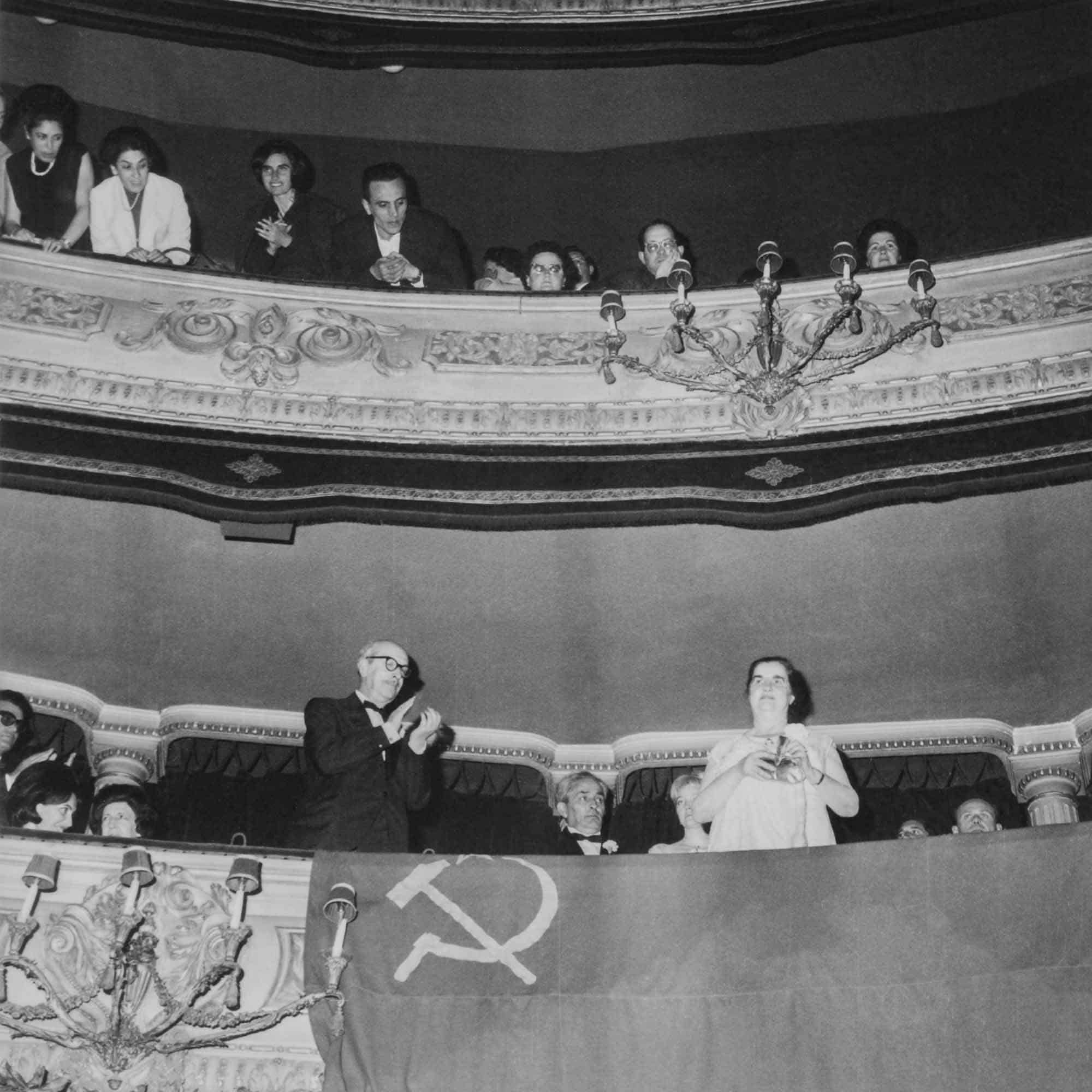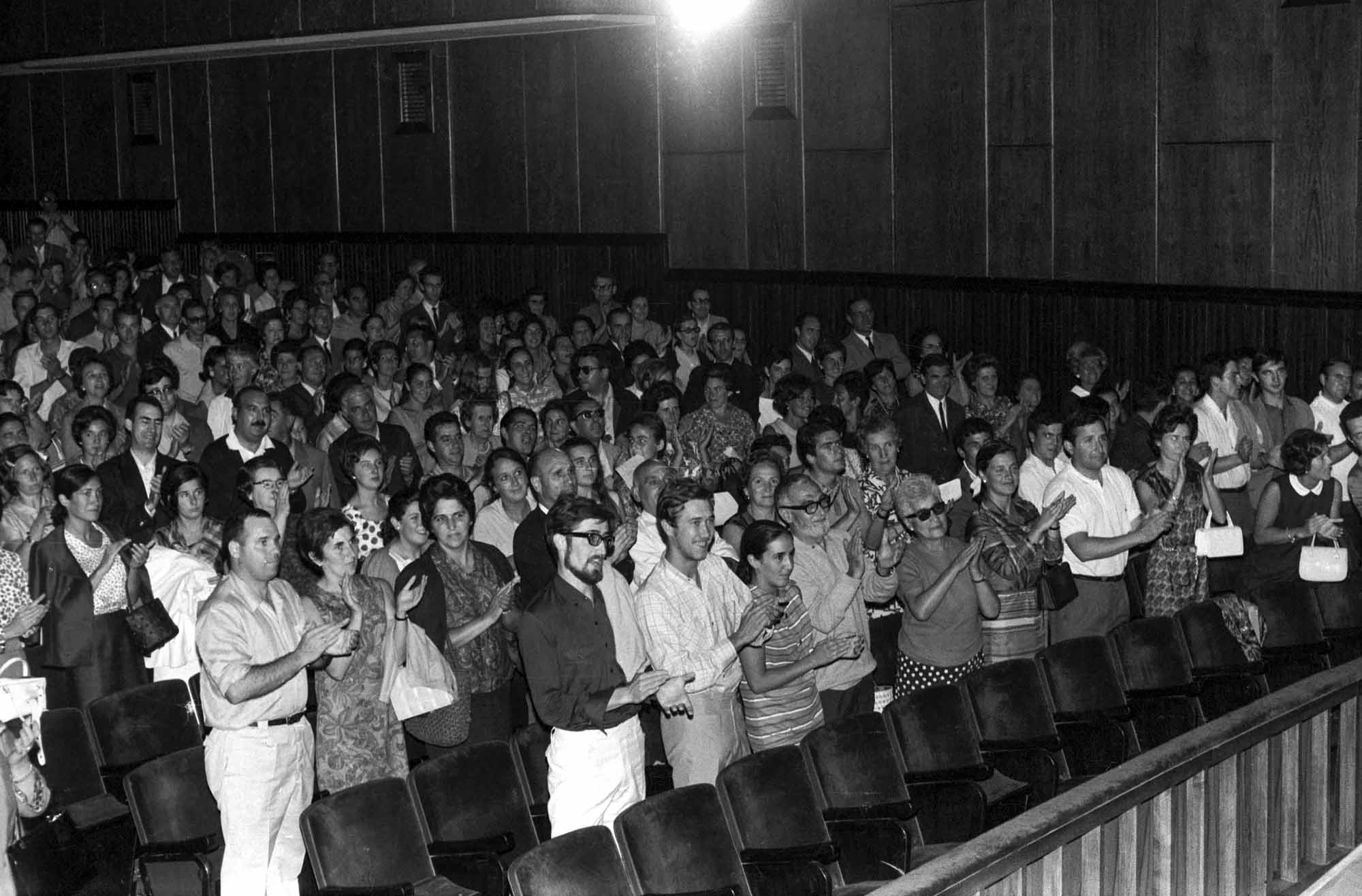 Por otro lado, la exposición pone el foco en el afuera de la alfombra roja, reflexionando sobre las fronteras sociales y simbólicas que se trazaban entre la expectación popular que suscitaba el Festival y la exclusividad y elitismo de la mayoría de sus actos oficiales. A través de esta reflexión sobre el adentro y el afuera del Festival, la exposición también interroga la presencia de los aparatos de la dictadura franquista en el certamen y su instrumentalización como escaparate internacional del régimen—pero también los resquicios de libertad que se abrieron en el marco del Festival.