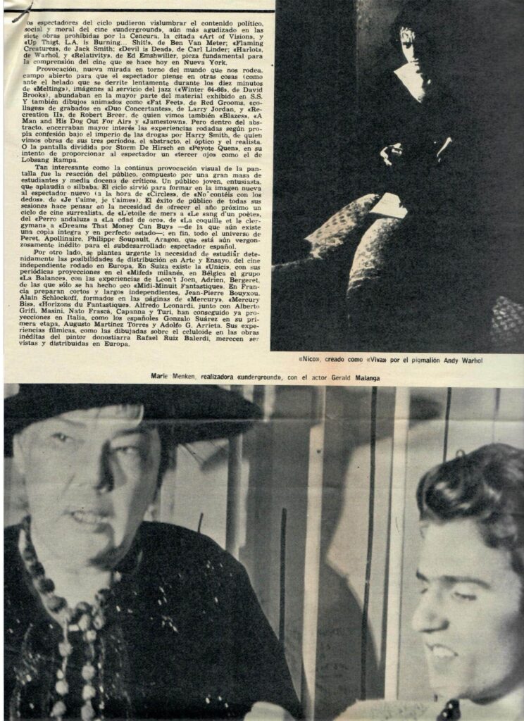 In San Sebastian we were just a decoration at the edge of a festival and the Franco government insisted on pre-screening every film first. Wouldn’t allow Brakhage’s films to be shown because of nudity, so this was pretty awful.[7]