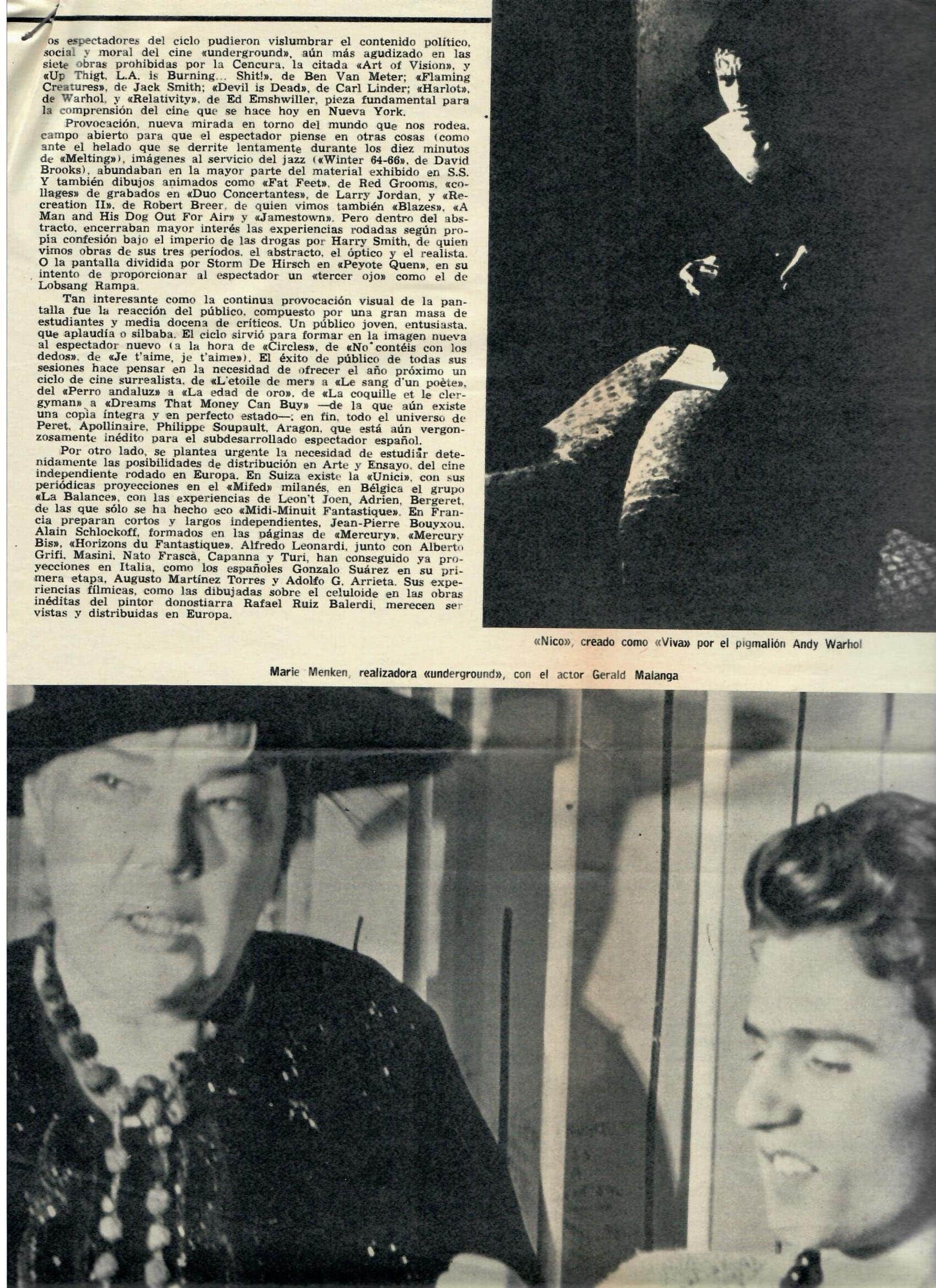 El ciclo New American Cinema (1968) en el punto de mira franquista.